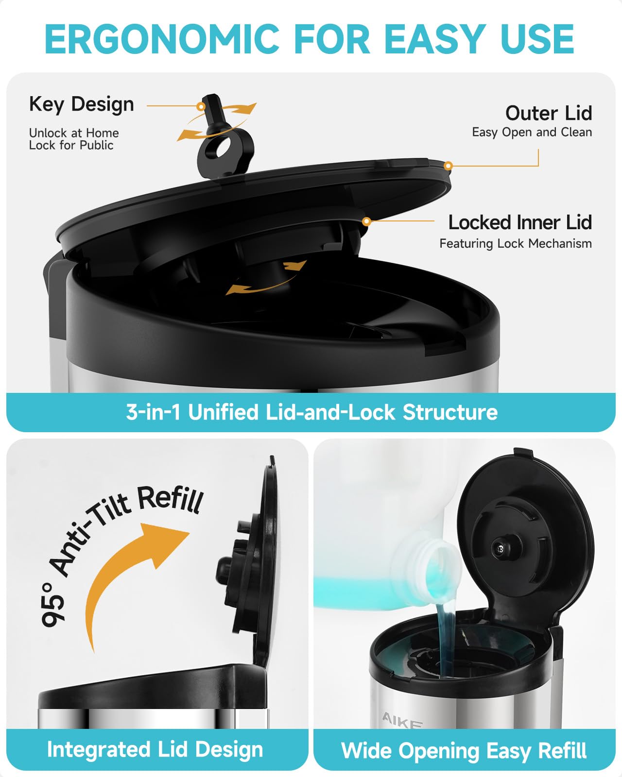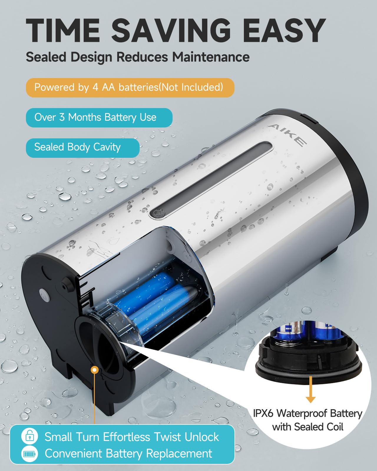 Sophisticated machinery: AK1205E offers 500+ dispenses with a single refill. Suitable for liquid or gel-based soap flavor. Upgrade your hygiene experience!