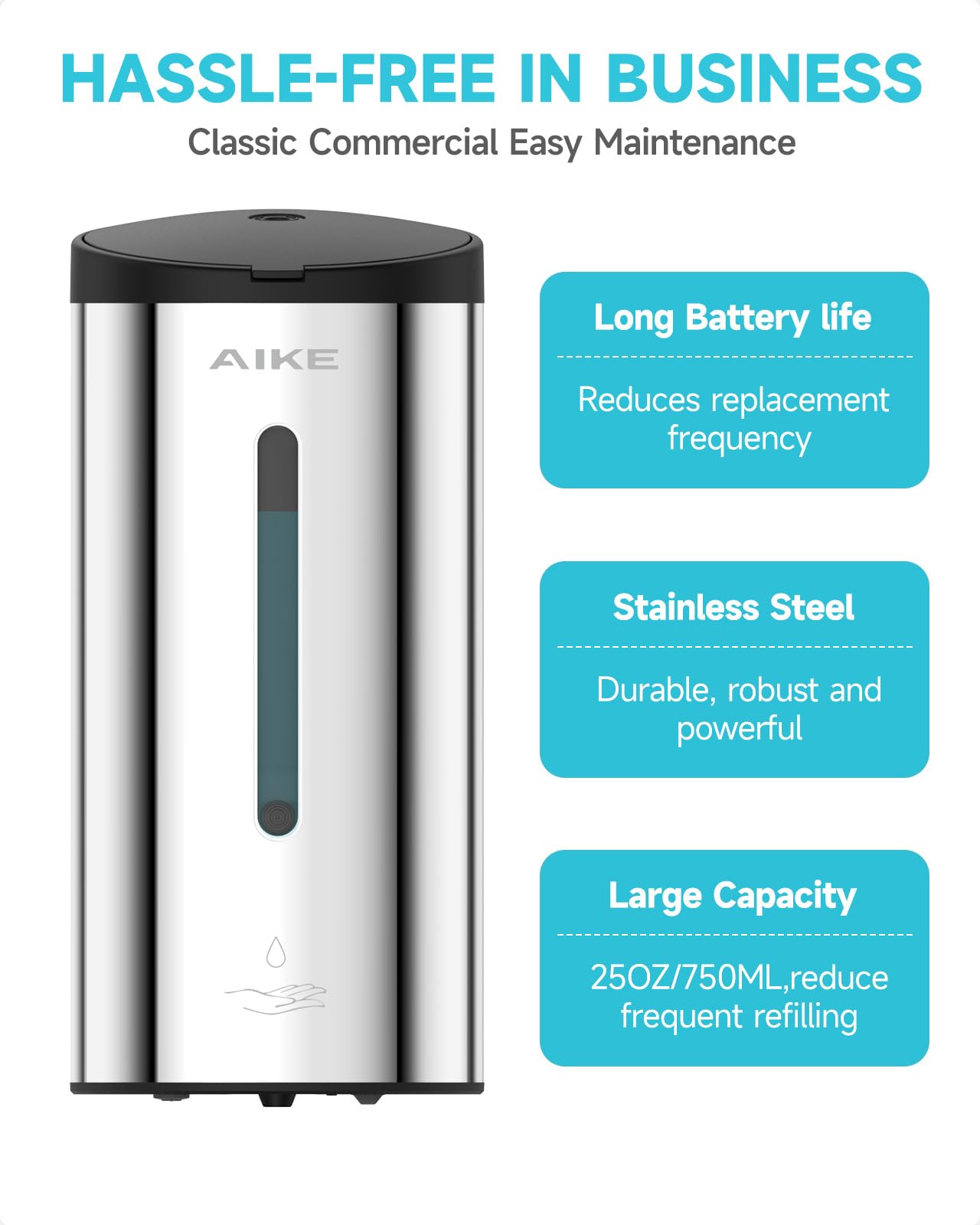 AIKE Automatic 5-Gear Adjustable Liquid Soap Dispenser 25 Fl Oz, AK1205E - Polished is backordered and will ship as soon as it is back in stock.