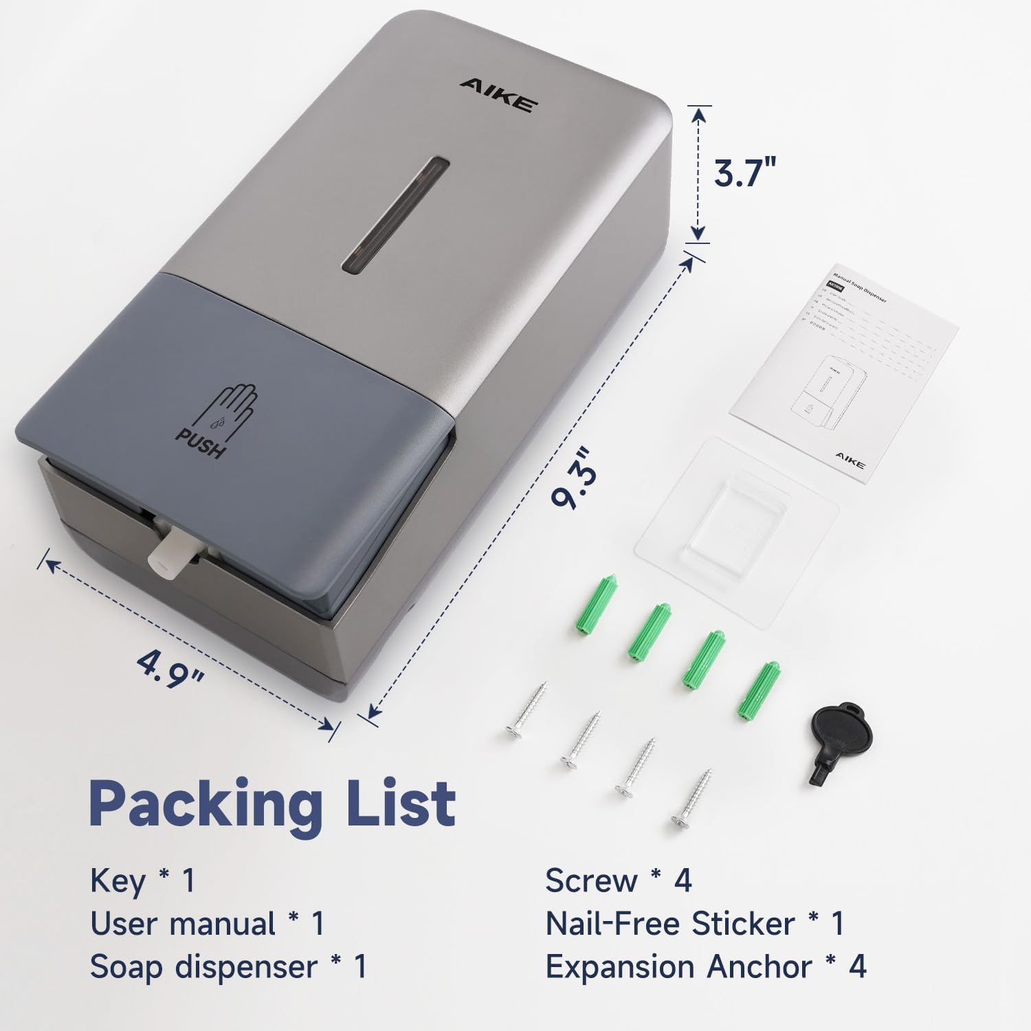 AIKE Manual Push Liquid Soap Dispenser for Commercial Bathroom 27oz Large Capacity,Model AK1006 - Silver is backordered and will ship as soon as it is back in stock.