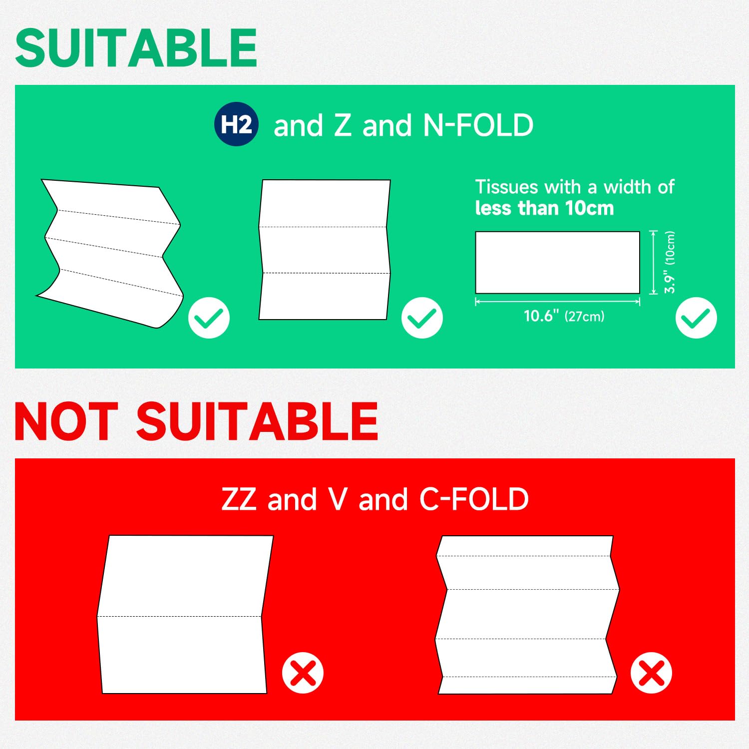 Perfect fit Multifold Paper Towel Folded Size 10.6" x 3.9" or Smaller.