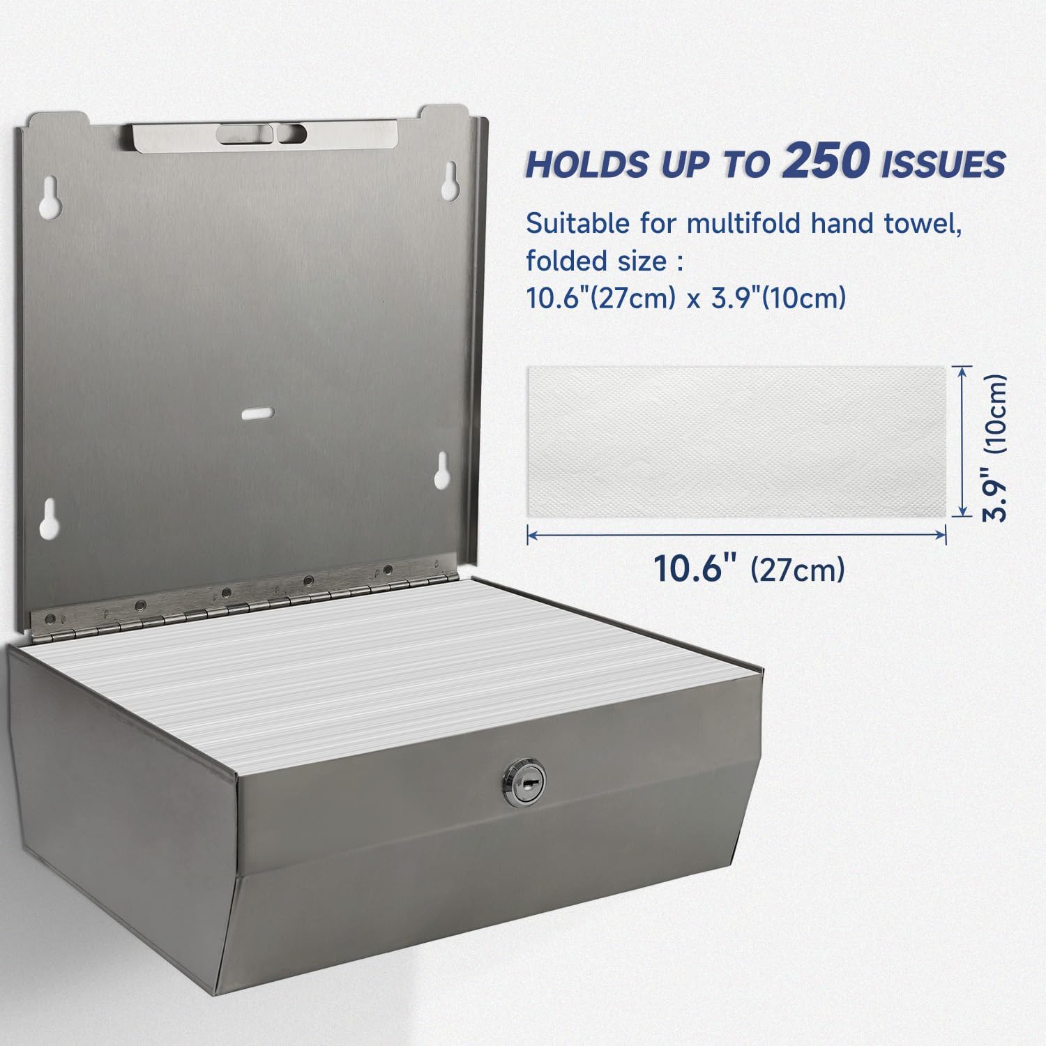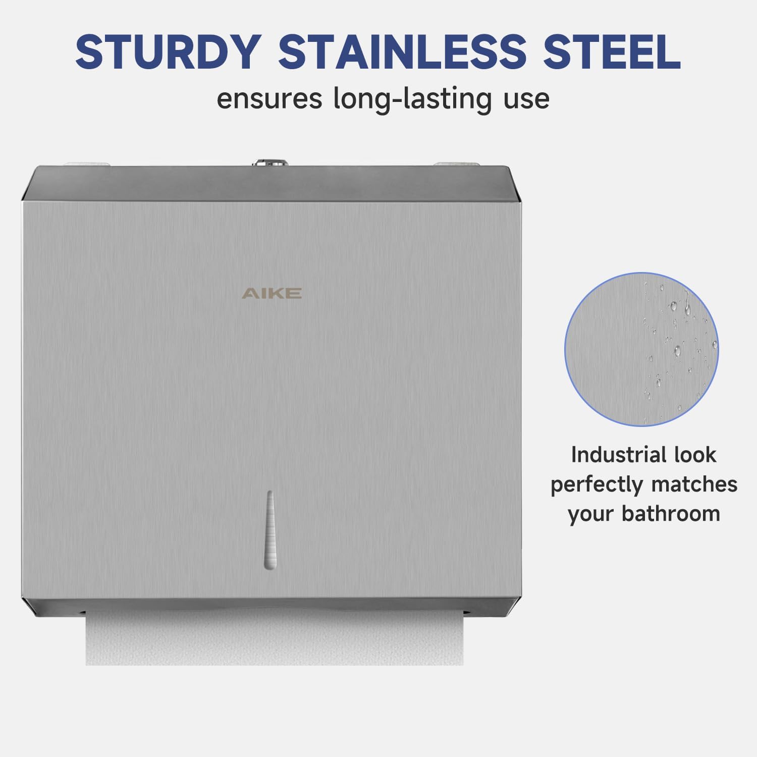 AIKE 250 Sheets Stainless Steel Commercial Wall Mount Paper Towel Dispenser with Lock,Model AK5180