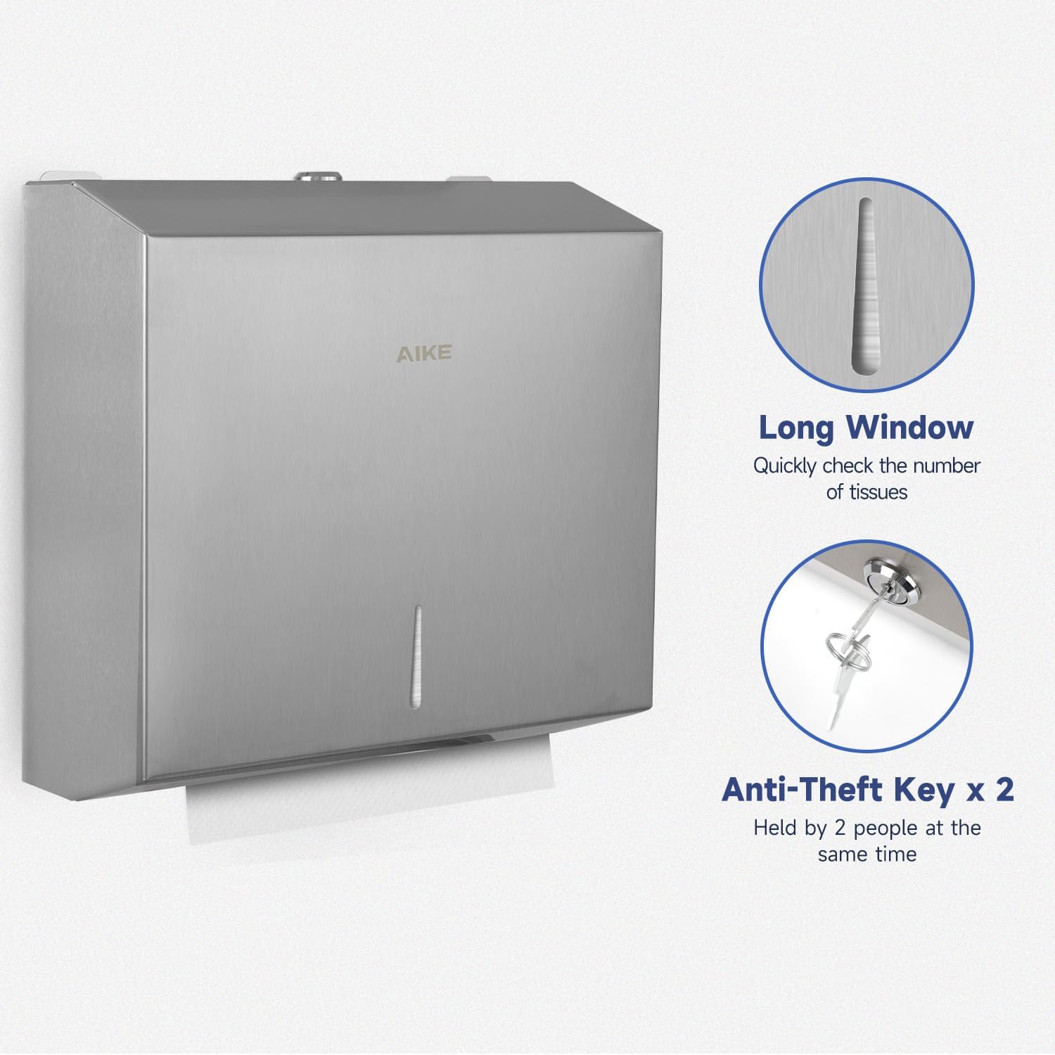 AIKE 250 Sheets Stainless Steel Commercial Wall Mount Paper Towel Dispenser with Lock,Model AK5180 - Brushed Stainless Steel is backordered and will ship as soon as it is back in stock.