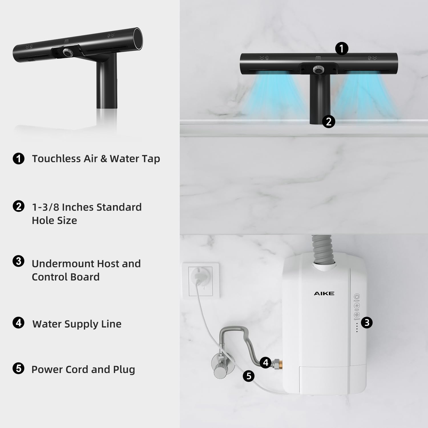 AIKE Super Air Tap Hand Dryer – Wash & Dry Combo | Fast, Hygienic, Space-saving
