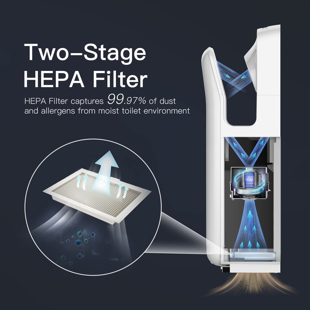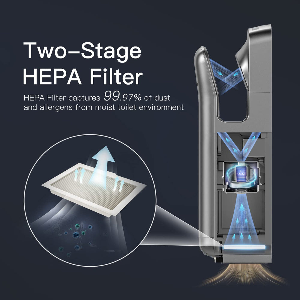 Elevate your bathroom with AK2005H: Stylish design, 7-10 second fast drying, HEPA filter for superior air filtration, and LED time display feature.