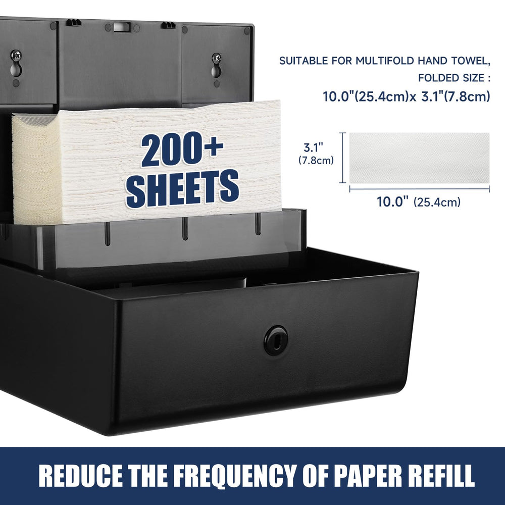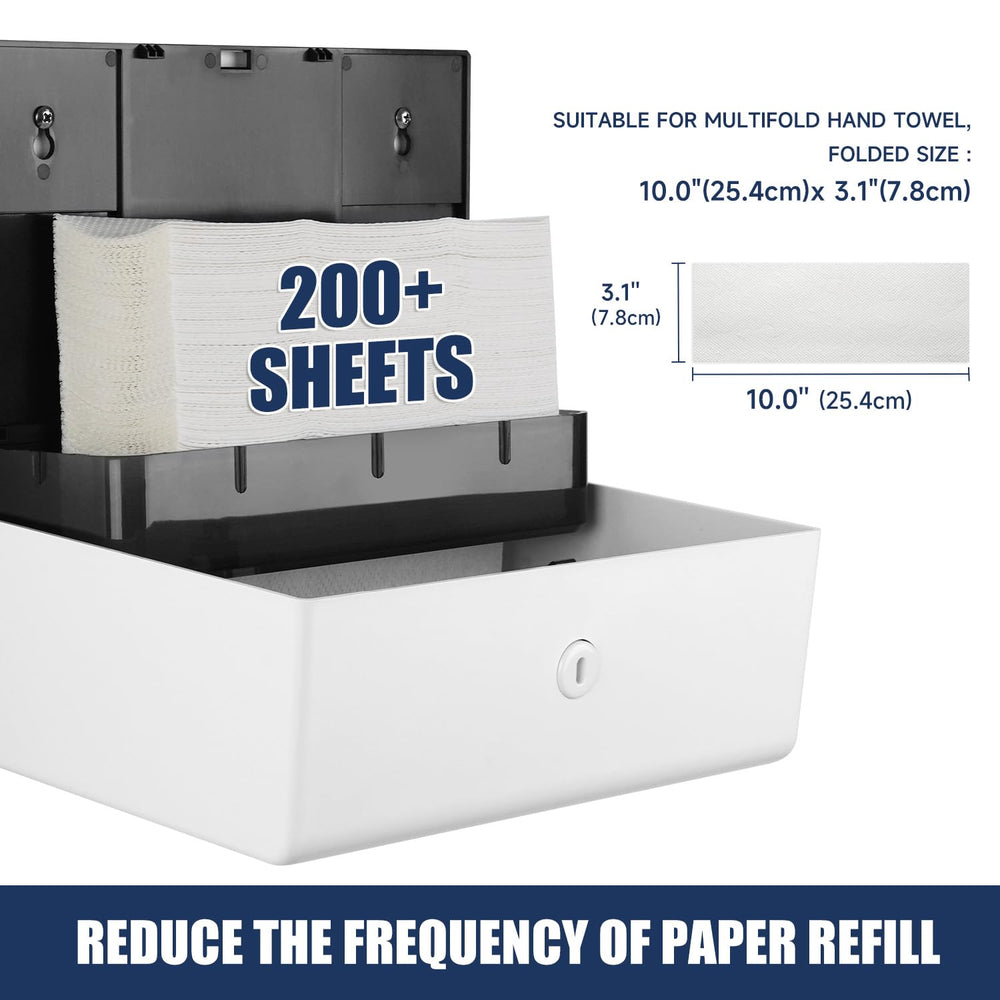 AIKE Multifold-Papierhandtuchspender, Taschentuchspender zur Wandmontage mit Smart Lock, 200 Blatt, gefaltete Größe 10" x 3,1" oder kleiner, AK5101