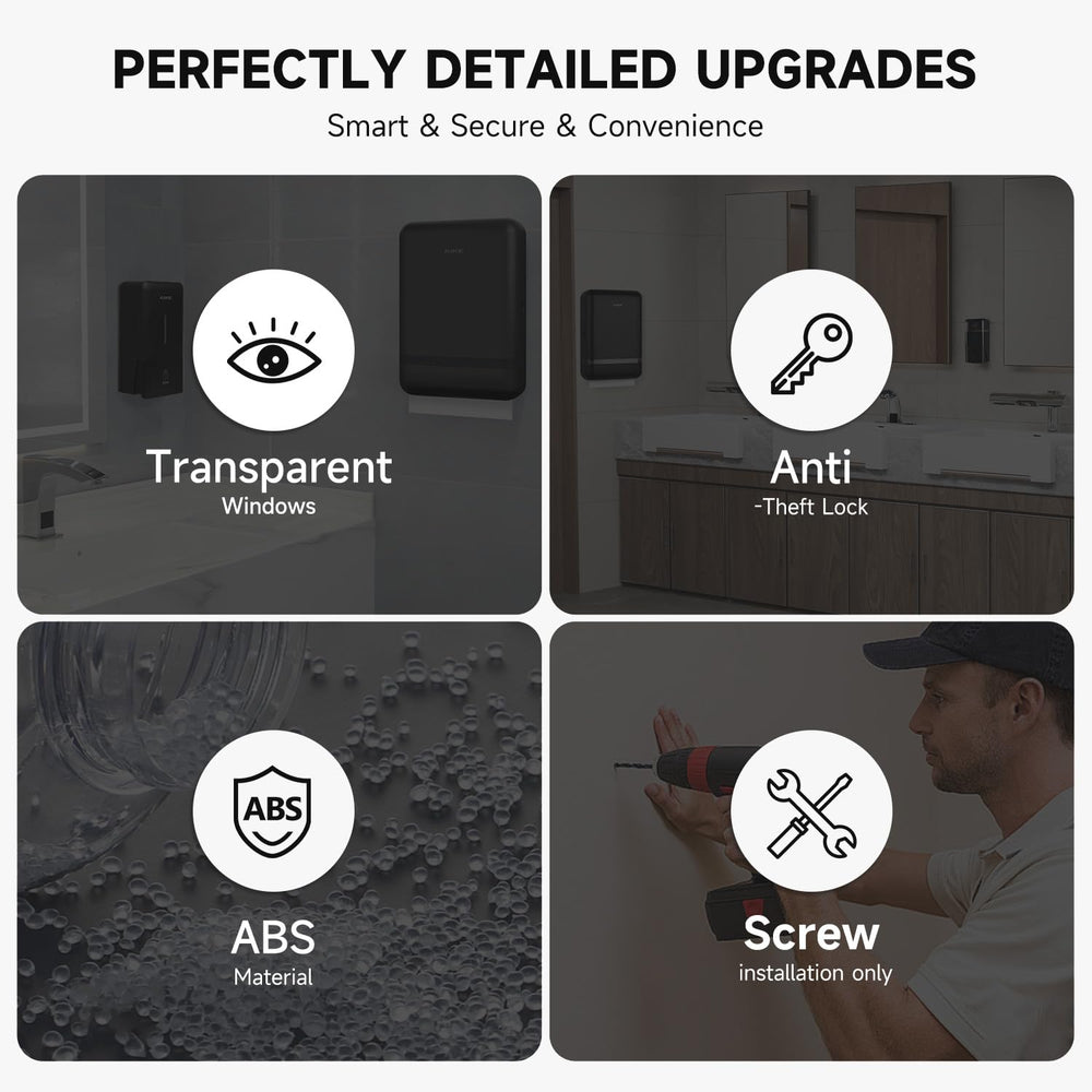 AIKE Multifold-Papierhandtuchspender, Taschentuchspender zur Wandmontage mit Smart Lock, 200 Blatt, gefaltete Größe 10" x 3,1" oder kleiner, AK5101 - Schwarz ist auf Lager und wird versandt, sobald es wieder verfügbar ist