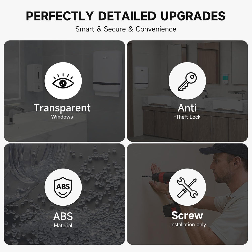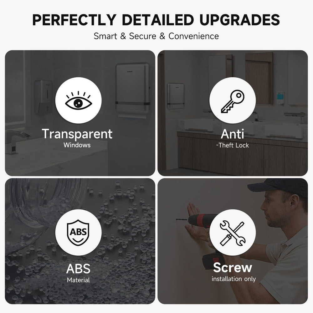 AIKE Multifold-Papierhandtuchspender, Taschentuchspender zur Wandmontage mit Smart Lock, 200 Blatt, gefaltete Größe 10" x 3,1" oder kleiner, AK5101