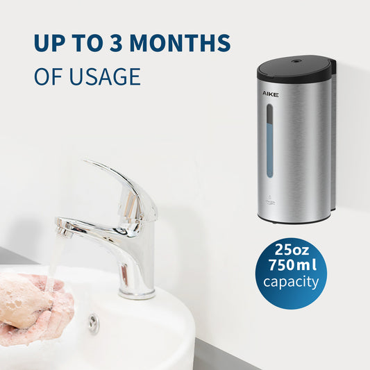 •Large Capacity: This soap dispenser features a 22 fl. oz / 650 ml reservoir(fills up to 24fl. oz / 700ml), eliminating the need for frequent refills, making it ideal for both homes and busy commercial environments.