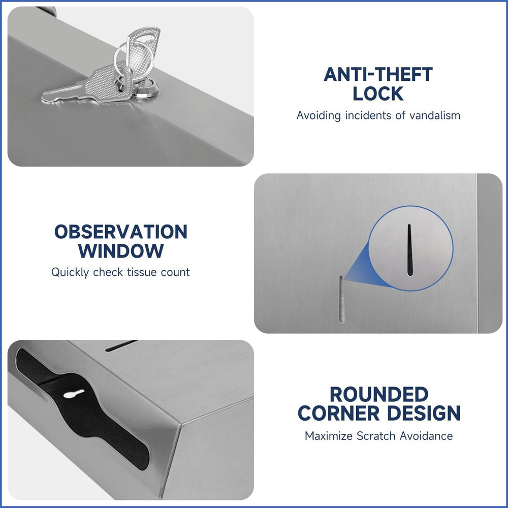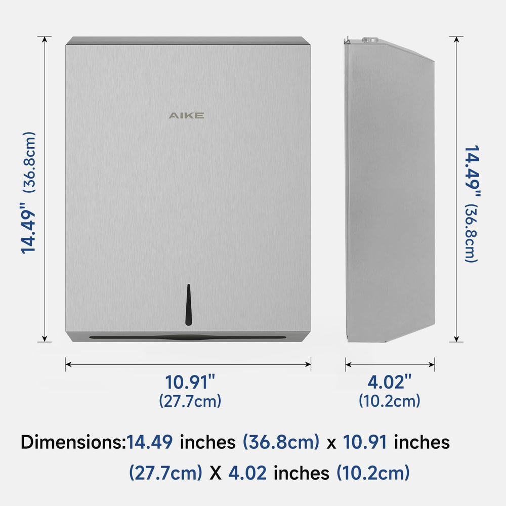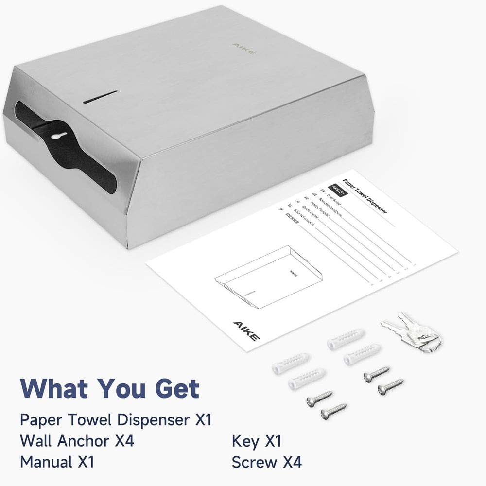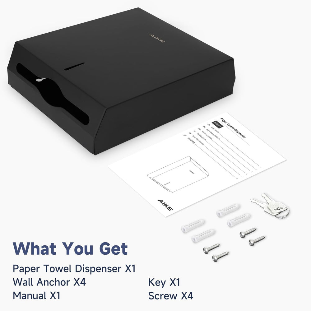 Acceso rápido y conveniente a toallas de papel con el dispensador de pared de AIKE. Ventana transparente, cerradura inteligente para rellenar fácilmente, tamaño ajustable que se adapta a la mayoría de toallas de mano.