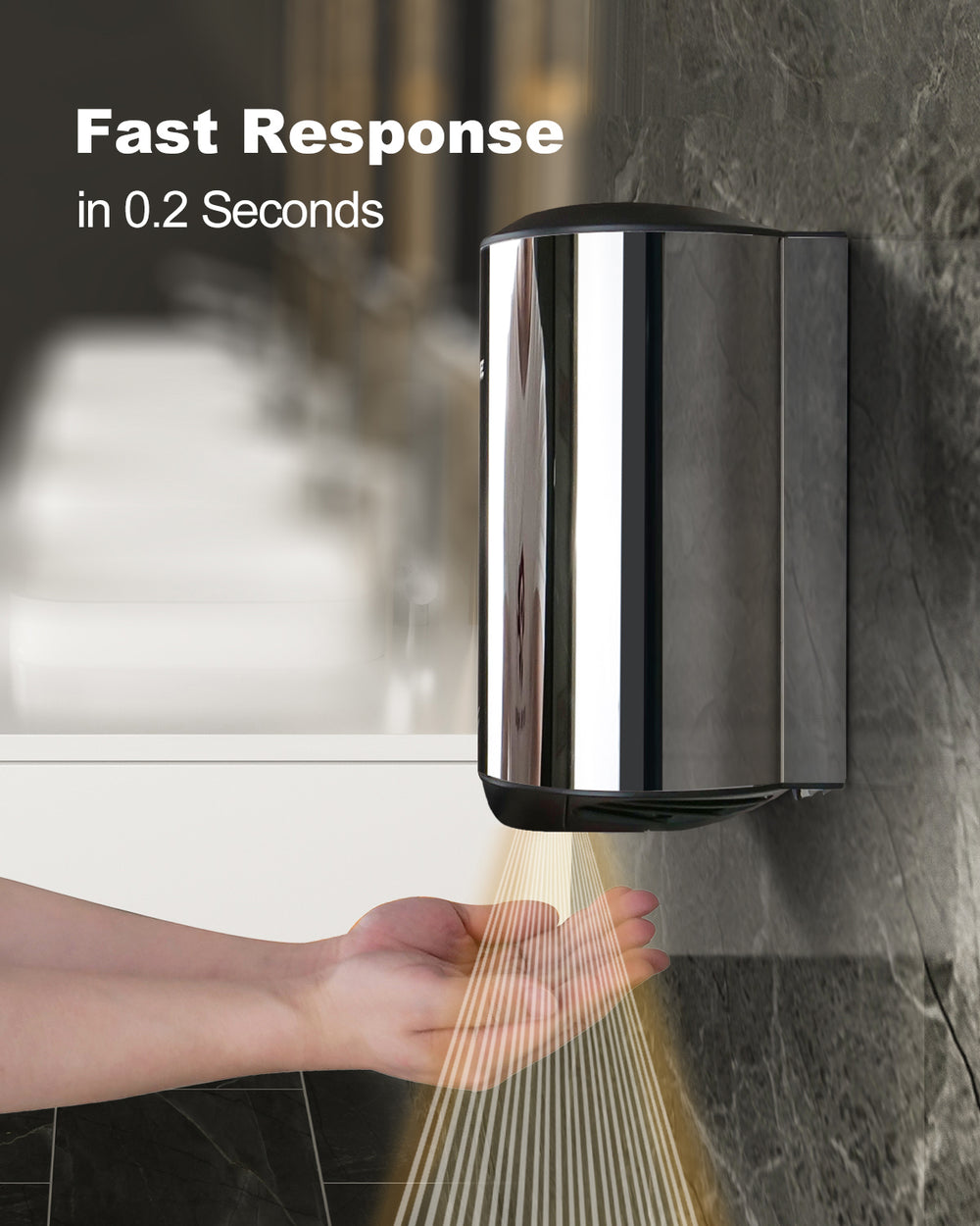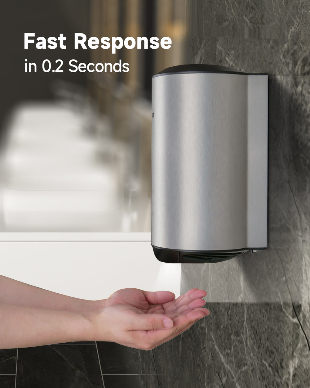 - Elaborado con un diseño elegante con apariencia de cerveza oscura, este secador de manos aprobado por UL está diseñado para lucir elegante y al mismo tiempo brindar un aire concentrado que seca tus manos en segundos.