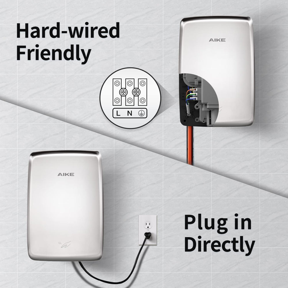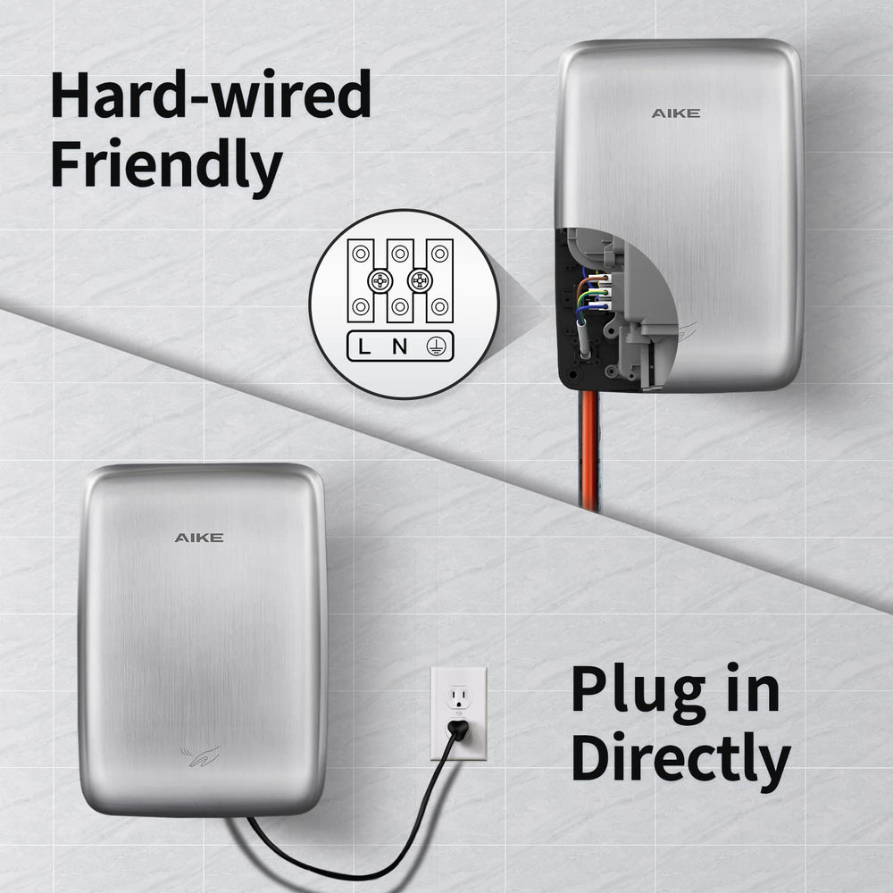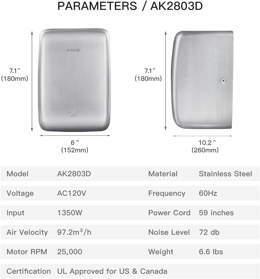 Secador de manos eléctrico de chorro de acero inoxidable AIKE, aprobado por UL 120 V, AK2803D