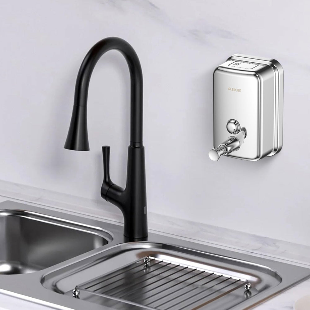 AIKE Stainless Steel Shelled Manual Soap Dispenser For Bathroom, 34fl.oz/1000ml,Model AK1001 - Polished is backordered and will ship as soon as it is back in stock.